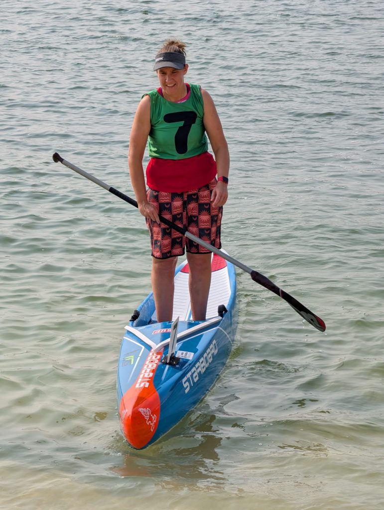 These athletes are taking part in either one, two or three events – Sprints, Technical and Distance. The Sprints are fast and furious over a straight line of 100 metres. The Technical race is a course around 7 buoys with a distance of approx. 1 km, and the Distance is around 10 km.