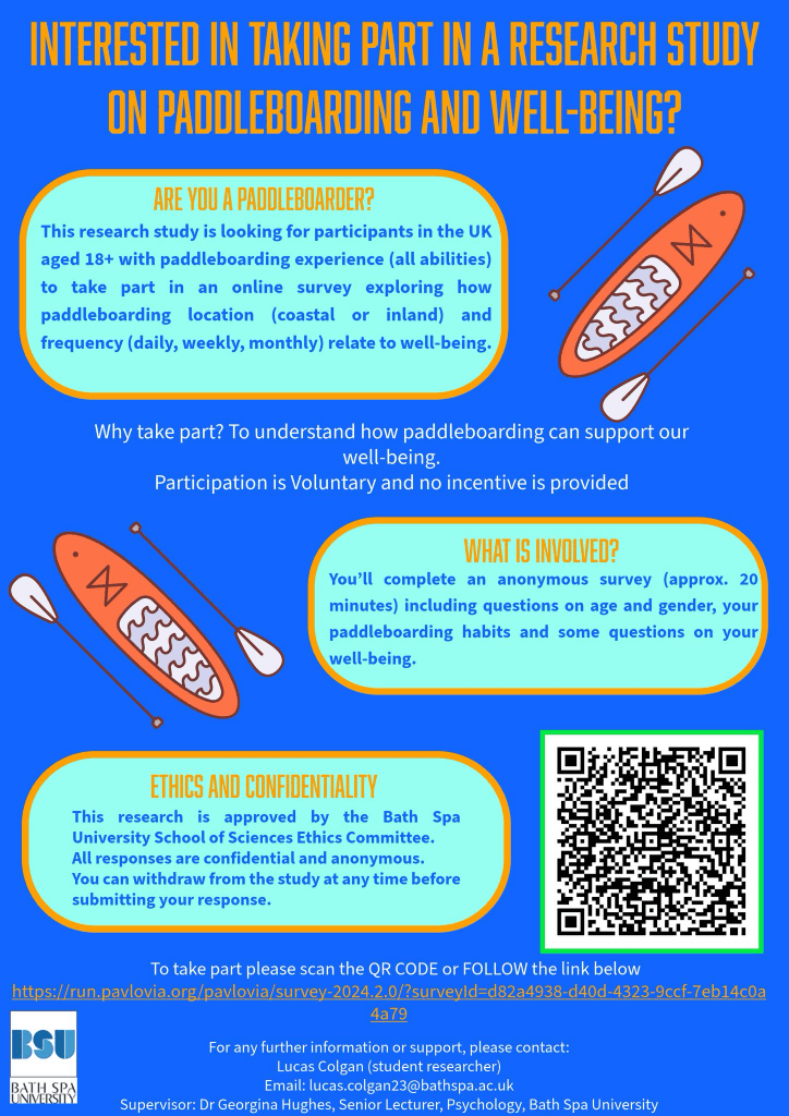 Take the survey here: BLUE SPACE AND PADDLEBOARDING SURVEY